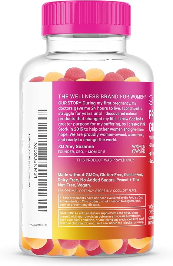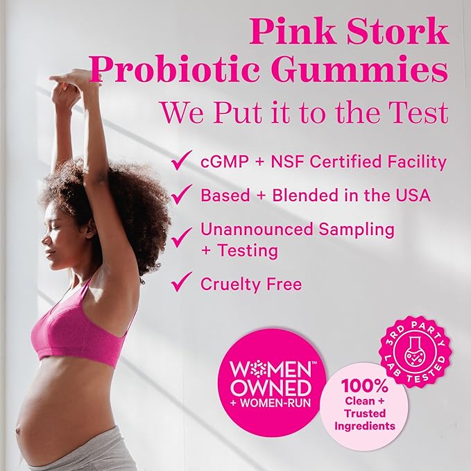 - Clean: Pink Stork Probiotic Gummies do not contain GMOs, gluten, sugars, gelatin, wheat, or soy. Third-party tested and breastfeeding-friendly for nursing and pumping moms.