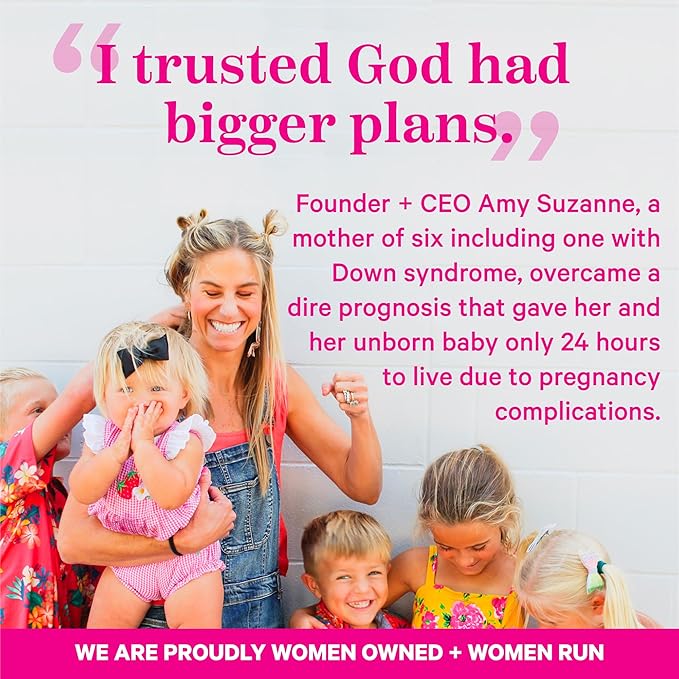 - Women-Owned and Women-Run: Our founder and CEO, Amy Suzanne, is a mom of 6 children and knows how important it is to give new moms products you can trust. Over 80% of our employees are women, and we create clean, trusted, and effective products for every stage of a woman's journey. We are on a mission to provide women with hope and positively impact everyone that comes in contact with Pink Stork.