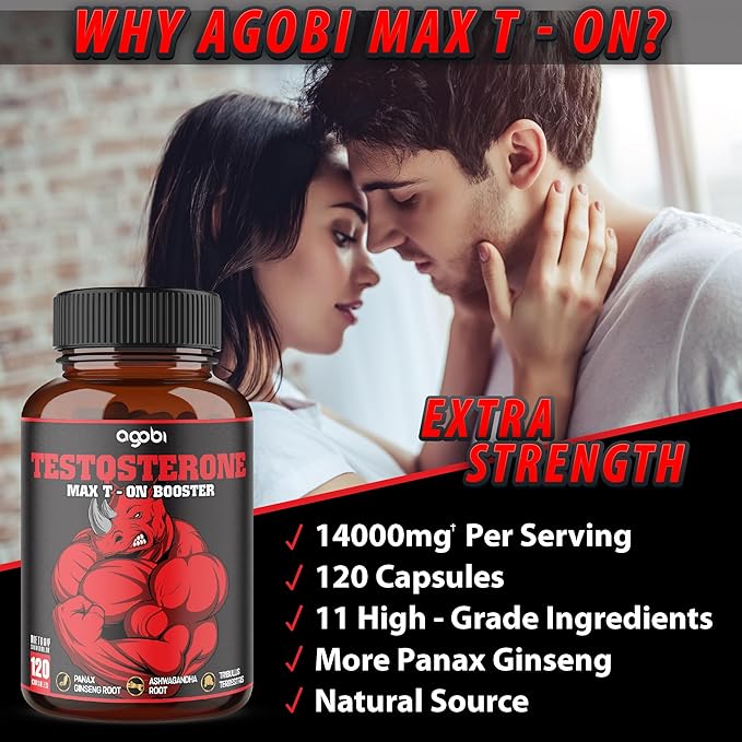 agobi 11in1 Testosterone Supplement for Men from Herbal Extract 14000mg Equivalent - Endurance, Drive, and Body Support 120 Vegan Capsules for 2 Months