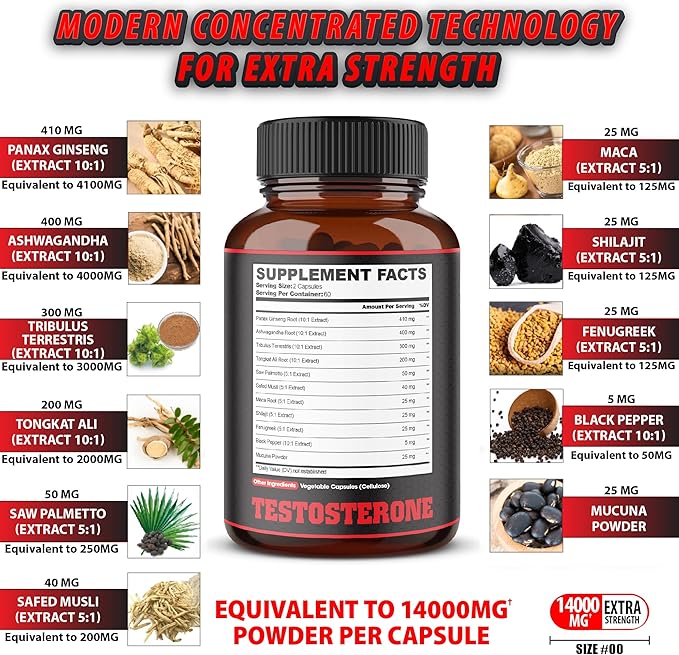- ✅ Max T-On Complex Supplements with Panax Ginseng Root, Ashwagandha Root, Tribulus Terrestris, Tongkat Ali Root, Saw Palmetto, Safed Musli, Maca Root, Shilajit, Fenugreek, Black Pepper, Mucuna Powder; 11-in-1 Special Formula elevate well-being.