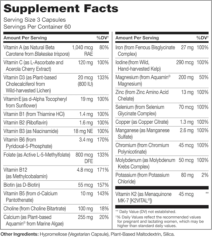 - Gentle on the Stomach: Made with plant-based and chelated minerals that are easier to digest and absorb, including plant calcium and magnesium, chelated zinc and selenium, and a gentle, non constipating chelated iron.*