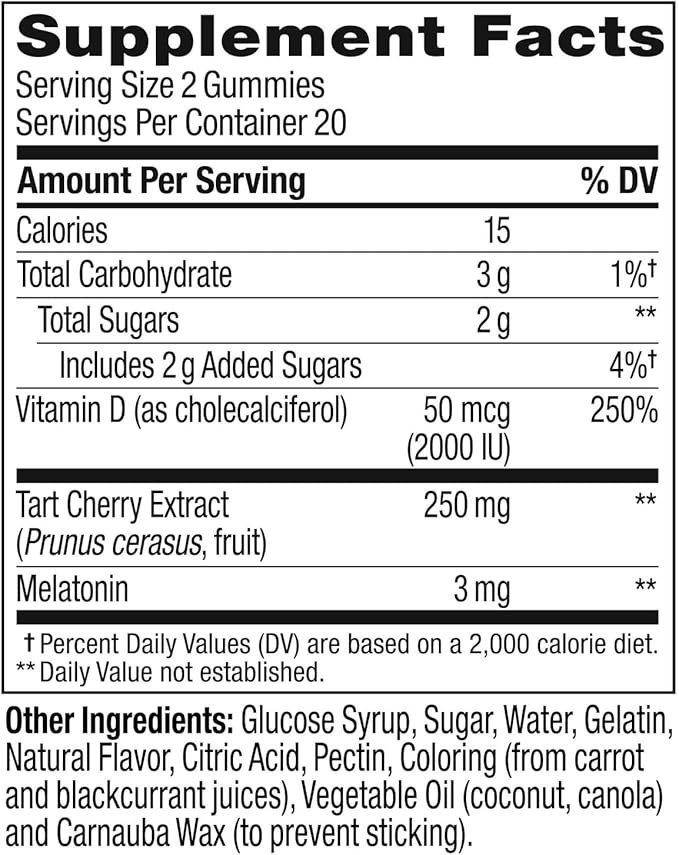 - Special Ingredients : A blend of Melatonin, Tart Cherry and Vitamin D