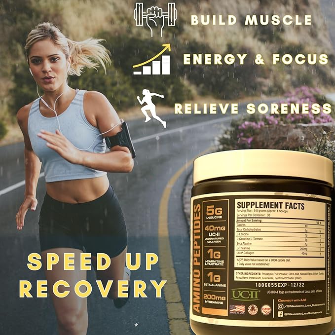 - Reduce Soreness: Recover faster from your workouts with our BCAA and essential Amino Acid Formula featuring Leucine, Carnitine, Beta Alanine, Theanine and UC-11 Collagen