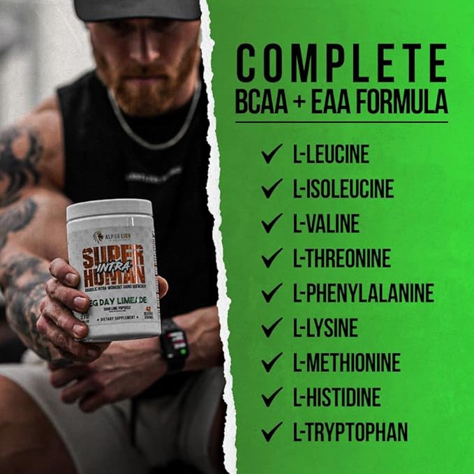 ALPHA LION Superhuman Intra Workout Powder for Men & Women, Amino Acids Drink, Muscle Recovery Supplement, BCAA Powder, Electrolytes & Hydration Mix (42 Servings, Lime Flavor)