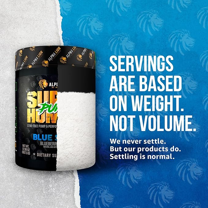 ALPHA LION Superhuman Pump Pre Workout Powder, Nootropic Caffeine & Stim Free Preworkout Supplement, Nitric Oxide Booster, Muscle Gainer, Energy & Focus (42 Servings, Blueberry Steel Flavor)
