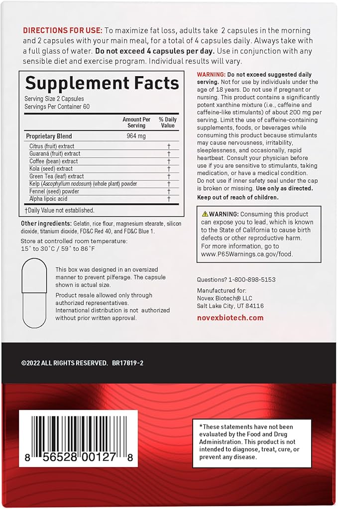 Novex Biotech ThermoDyne - Thermogenic Fat Burner – Appetite Suppressant – Metabolism Boost – Burn Calories – Energy Booster – Improve Focus – Fat Burning Pills – Promote Lean Muscle Tone - 120 Pills