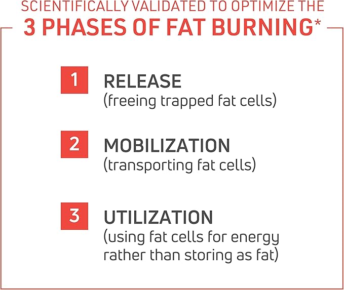 - THREE-PRONGED APPROACH: This cutting-edge formula optimizes the three phases of fat burning–lipid release, transport, and utilization–to help release trapped fat cells, mobilizing them so they can be used for energy, rather than stored as fat.*
