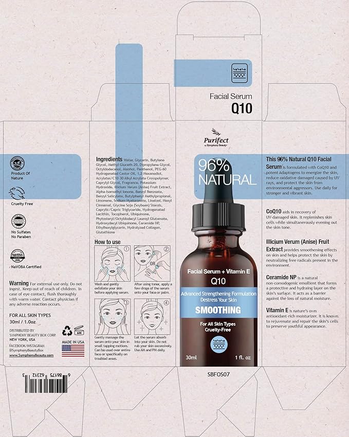 96% NATURAL Coenzyme Q10 Facial Serum for Anti Aging Moistrize Reduce Fine Lines Smooth Wrinkles with CoQ10 Ceramides Fruit Extract 30ml 1fl oz Non-Greasy and Fast Absorbing PURIFECT MADE IN USA