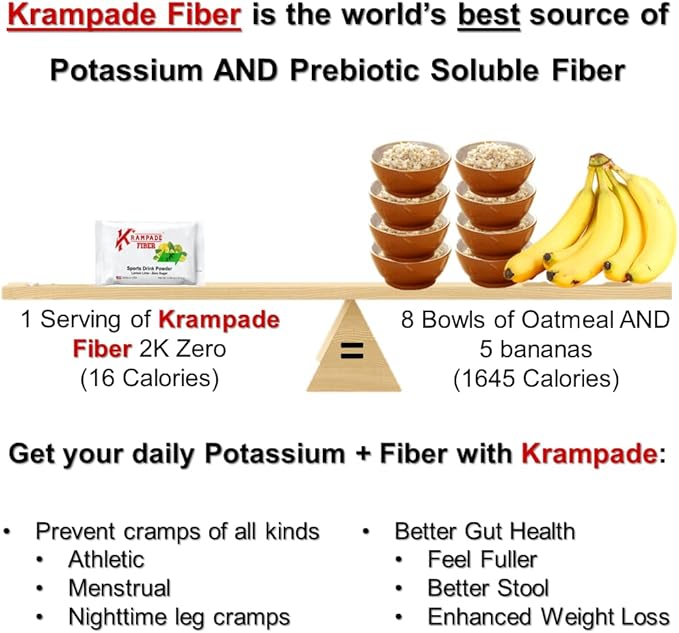 - Complete Cramp Defense - Krampade's proprietary potassium chloride and potassium citrate powder has 2x the potassium of coconut water and is the faster, more effective alternative to quinine for leg cramps, heating pad for period cramps, magnesium spray and other so-called solutions. If it cramps, we uncramp it, guaranteed.