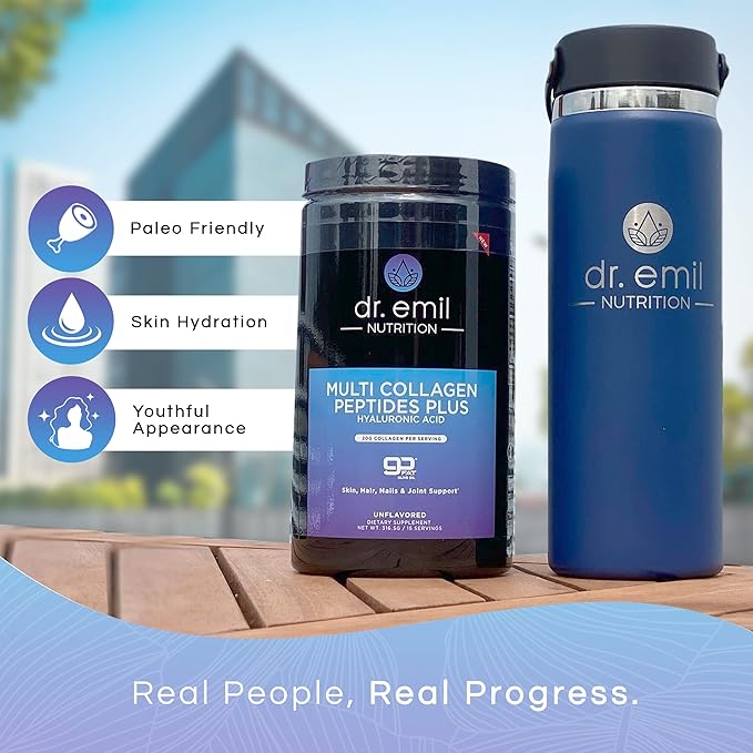 DR. EMIL NUTRITION Multi Collagen Peptides Powder - 20g of Unflavored Hydrolyzed Collagen Protein Powder with Hyaluronic Acid for Hair, Skin, Nails and Joints - 15 Servings