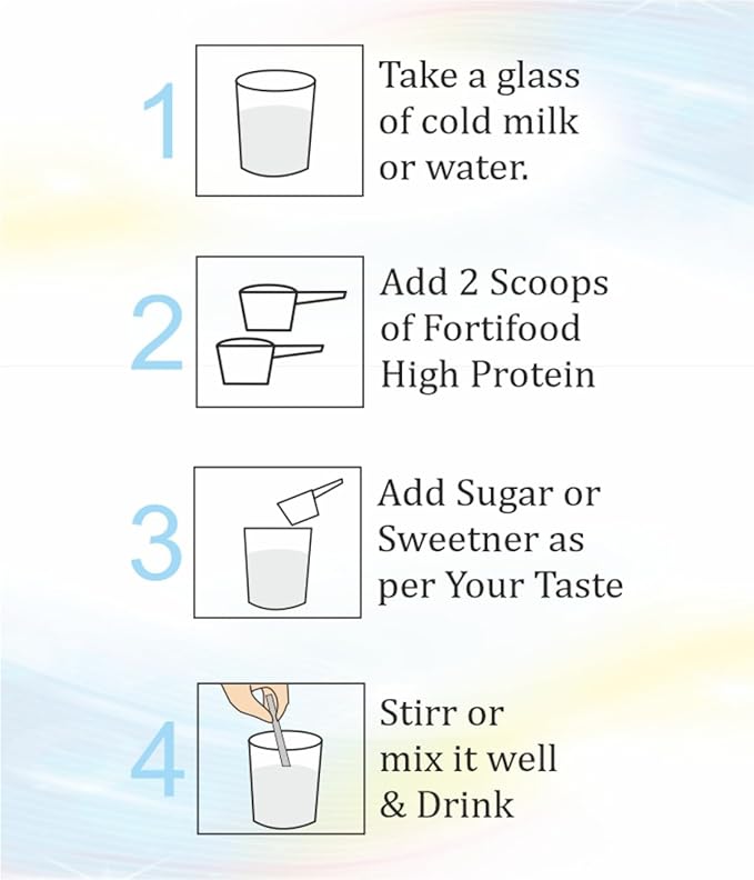 - DELICIOUS COMPLETE PROTEIN SHAKE: It is super easy to beat FORTIFOOD High Protein Powder into milk to make a smooth creamy shake or blend it with your favorite beverage or make smoothies. Enjoy it as a post-workout recovery shake, a nutritious breakfast option, or a satisfying snack to keep you fueled throughout the day.