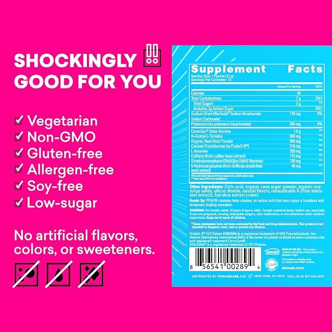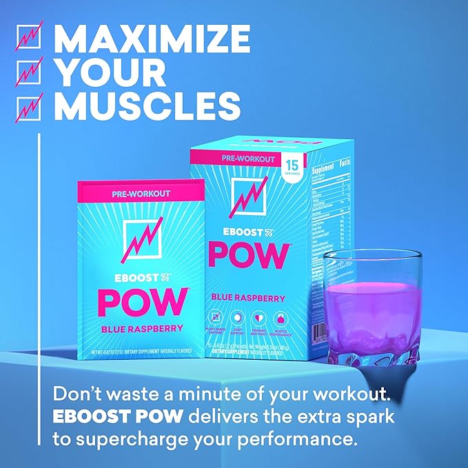 - Supercharge Your Performance: POW is a natural pre workout that enhances your mind and muscles to help you maximize your workouts. Work out hard and recover smoothly with ingredients in doses that deliver. Flavor: Blue Raspberry. 15 Packets