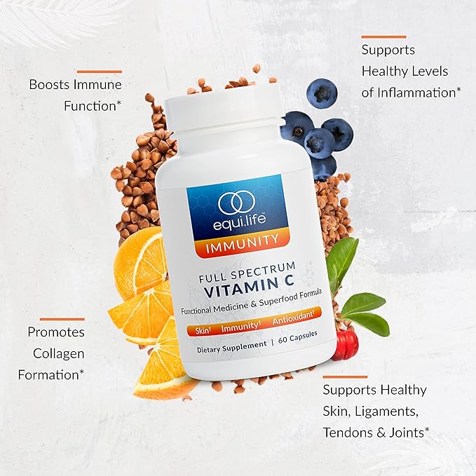 Equilife - Full Spectrum Vitamin C, Immune Support Supplement, Antioxidants Supplement, Promotes Promotes Long-Lasting Moisture in Skin, Helps Regulate Irritation Responses, Easy-to-Use (60 Capsules)
