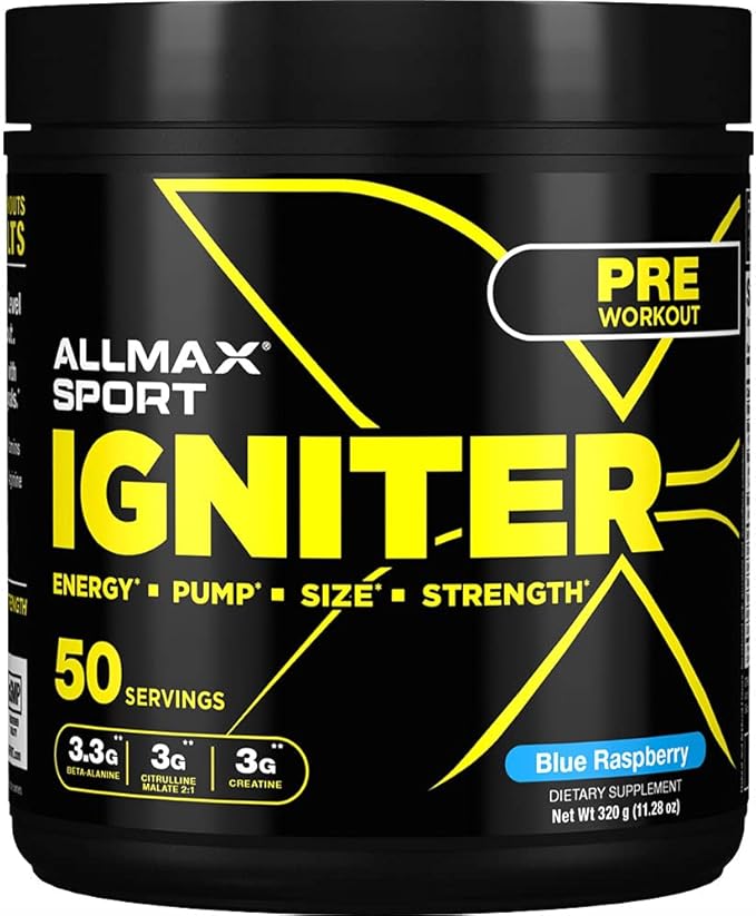 ALLMAX IGNITER Sport, Blue Raspberry - 330 g - Pre-Workout Formula - with Caffeine, L-Citrulline, L-Arginine, Creatine & Beta Alanine - Up to 50 Servings