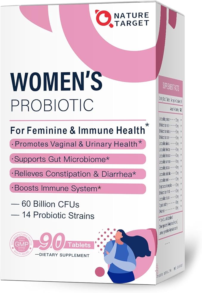 NATURE TARGET Probiotics-for-Women, Probiotics and Prebiotics, Cranberry and D-Mannose, 60-Billion-CFUs, Organic Probiotics for Digestive Health/Gut Health/Immune Booster, Women's Probiotics