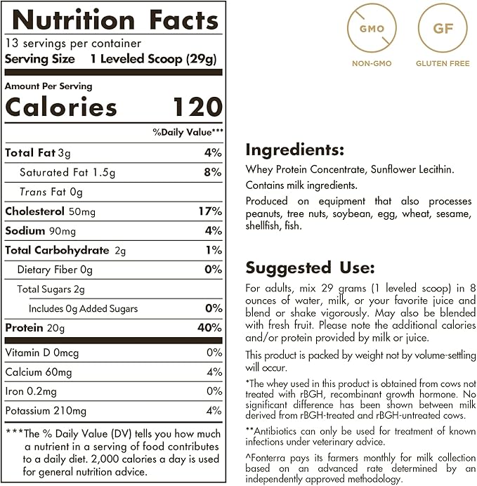 - Grass-Fed New Zealand Whey; 20g of grass-fed protein from pasture-raised New Zealand cows. New Zealand’s natural environment with fertile soil, moderate temperatures, plentiful rainfall, and abundant sunshine is ideal for grass-fed cows
