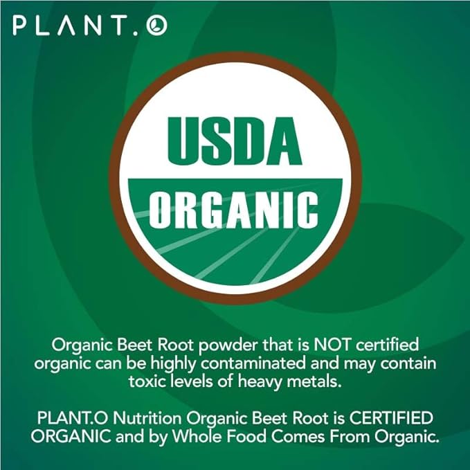 - USDA CERTIFIED ORGANIC BEET ROOT POWDER. Our beet root powder supplement is certified organic organic, vegan Friendly, Non-GMO, Gluten Free, Soy Free, No Artificial Flavors or Colors, No Preservatives, All Natural Ingredients, using only fresh beets carefully sourced and cultivated.