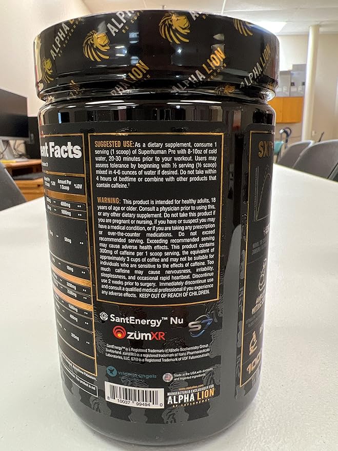 Alpha Lion Superhuman Pre Workout Powder, Beta Alanine, L-Taurine & Tri-Source Caffeine for Sustained Energy & Focus, Nitric Oxide & Citrulline for Pump (21 Servings, Green Gummy Bear Flavor)