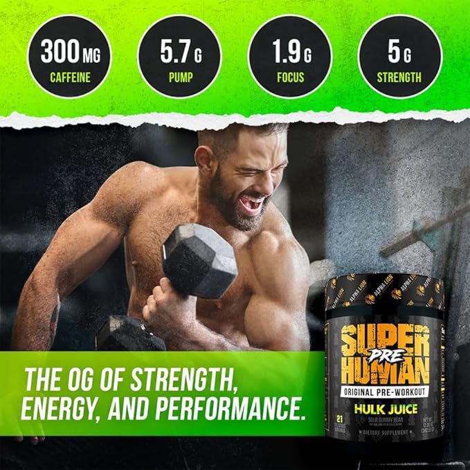 Alpha Lion Superhuman Pre Workout Powder, Beta Alanine, L-Taurine & Tri-Source Caffeine for Sustained Energy & Focus, Nitric Oxide & Citrulline for Pump (21 Servings, Green Gummy Bear Flavor)