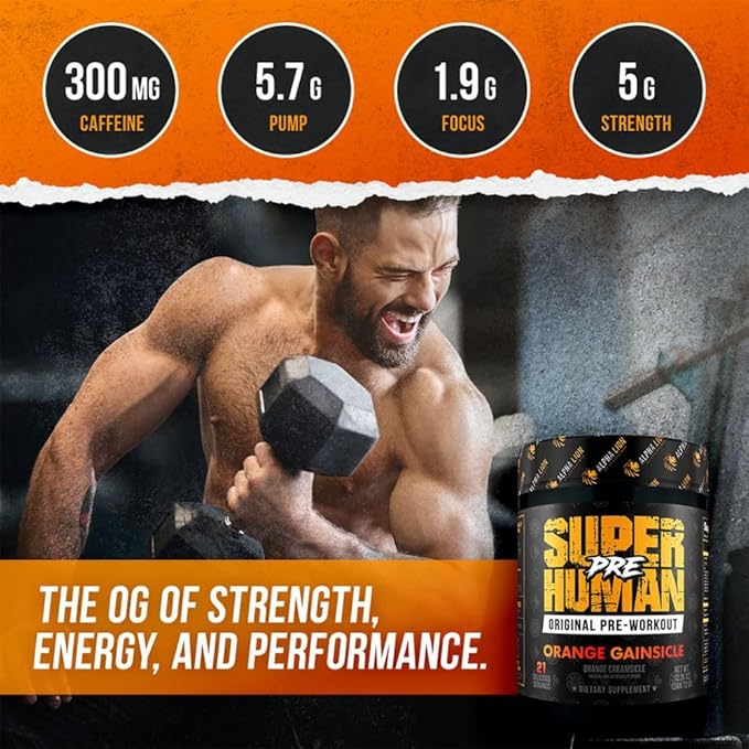 ALPHA LION Superhuman Pre Workout Powder, Beta Alanine, L-Taurine & Tri-Source Caffeine for Sustained Energy & Focus, Nitric Oxide & Citrulline for Pump (21 Servings, Orange Gainsicle)
