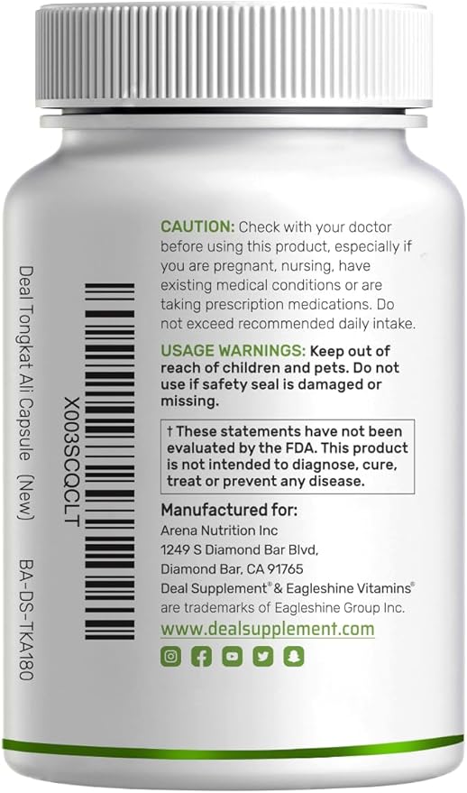 - Dosage & Servings – 240 High concentrated capsules per bottle, 2 capsule serving size, provides 1,000mg Tongkat Ali root (longjack) from a 300:1 extract with 100mg horny goat weed extract per serving, lasts up to a 120-day supply.