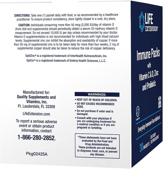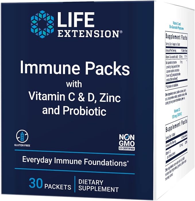 Life Extension - Immune Packs with Vitamin C & D, Zinc and Probiotic (30 Packs)
