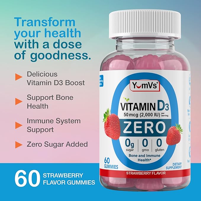 - RECOMMENDED USE We know staying healthy is hard, that's why at YumVs we've created a process that packs all the nutrients you need into our tasty all natural vitamins. Vitamin D3 ZERO gummy vitamins are an easy way to incorporate essential vitamins into your daily routine!