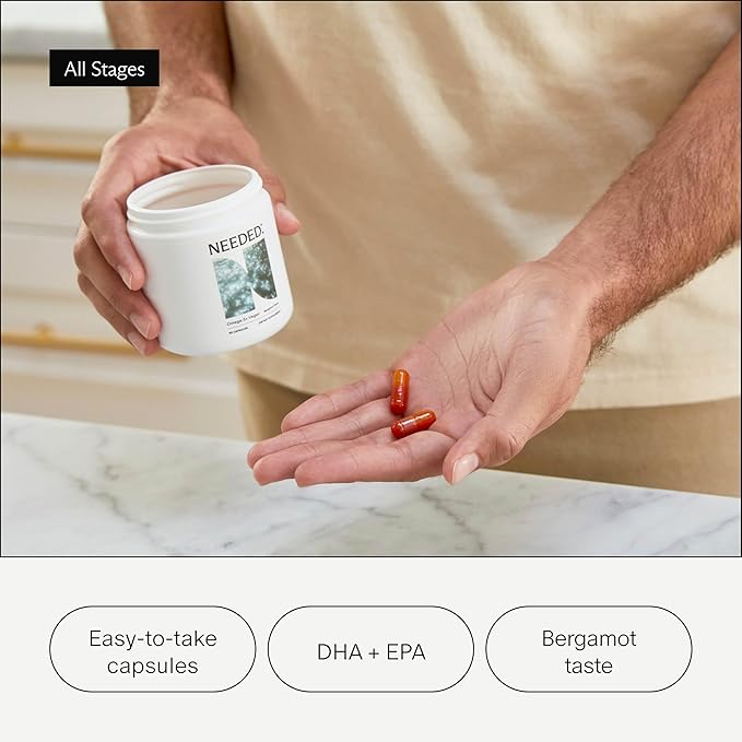 Needed Vegan Omega 3 DHA EPA Supplement - Delivers 500MG of Omega-3 DHA & EPA and 100MG of Choline, Encased in Veg Capsule, Sustainably Sourced from Algae Oil, Daily Dose of 2 Capsules, 30-Day Supply