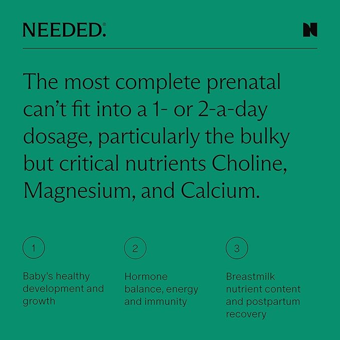 Needed. Multivitamin with Choline Capsules for Prenatal, Pregnancy, Breastfeeding, Postpartum | Expertly-Formulated & Third-Party Tested| 30-Day Supply