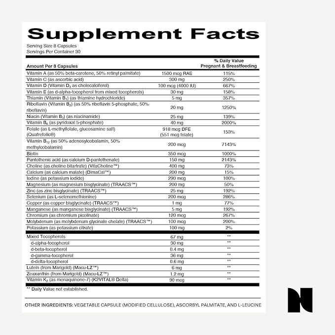 - OPTIMAL NUTRIENTS: Our prenatal for women multi provides 26 essential nutrients for comprehensive nourishment before, during, and after pregnancy