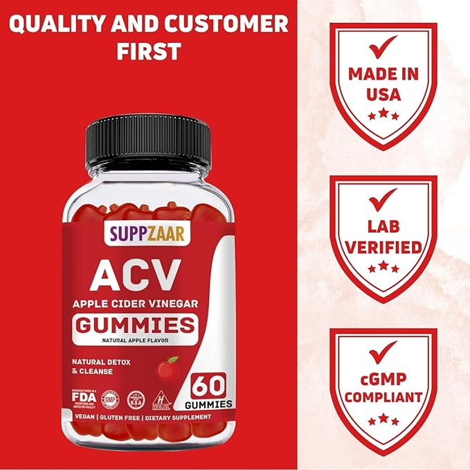 - ✔️ SUPPZAAR IS A USA-BASED BRAND: SUPPZAAR ACV Gummy Vitamin is proudly manufactured in the USA within an FDA-Registered facility and under GMP guidelines for quality.