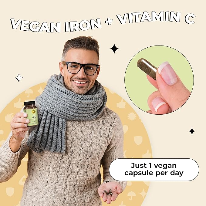 - Formulated for Maximum Absorption - Get the most out of your iron supplements for women and men. The natural Vitamin C in our iron capsules is taken from real fruit rather than a lab. It's nature's way of ensuring your body utilizes every serving of our iron vegan supplement.