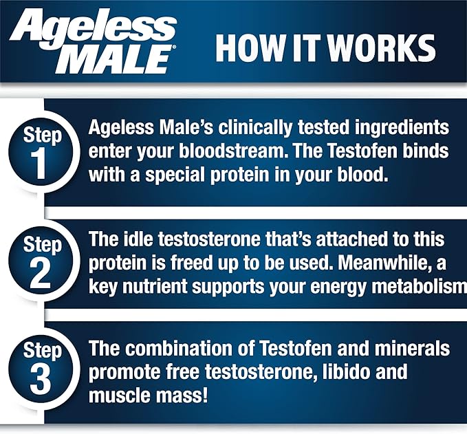- STRENGTH, MUSCLE & ENERGY INCREASE: Ageless Male helps to boost lean muscle, muscle strength and endurance when combined with strength training. Ageless Male free testosterone booster for men will also help with healthy energy production!