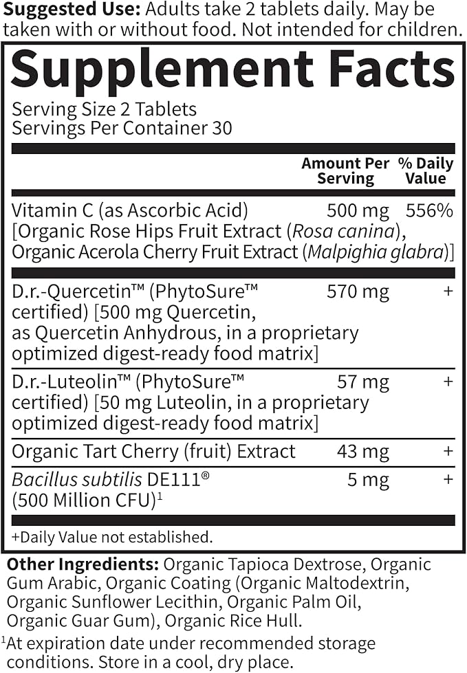 Garden of Life Quercetin Once Daily Immune System Support Supplement with Vitamin C, D & Probiotics – Dr Formulated – Immune Health, Respiratory Health, Skin Health, Gluten Free, Non GMO – 30 Tablets