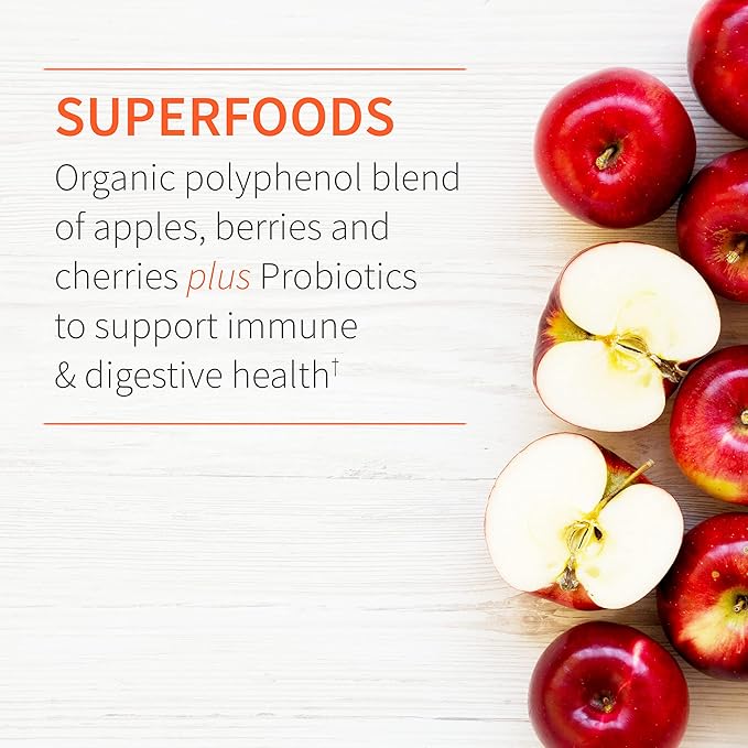 - THE IMMUNITY COMMUNITY: Our Organic Polyphenol Blend adds beneficial compounds with antioxidant properties from berries, cherries and apples for anti-inflammatory support along with Clinically Studied probiotic Bacillus subtilis DE111 for added benefits