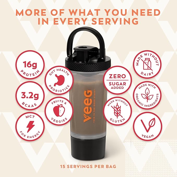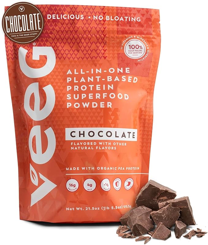 Veeg Meal Replacement Powder, All-in-One Plant-Based Protein Superfood with 50+ Superfoods & Vitamins, Organic Greens & Reds, MCT, Probiotics | Non GMO Vegan Protein Powder Chocolate, 15 Servings