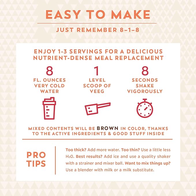 - INSTANTLY MIX AND ENJOY — Mixes effortlessly with water, ice and a quality shaker in 8 seconds. Provides a smooth and creamy texture with luxuriously delicious and satisfying taste without grittiness or chunks. Perfect for delicious meal replacement, breakfast on the go, a healthy snack, for coffee, for baking or post workout