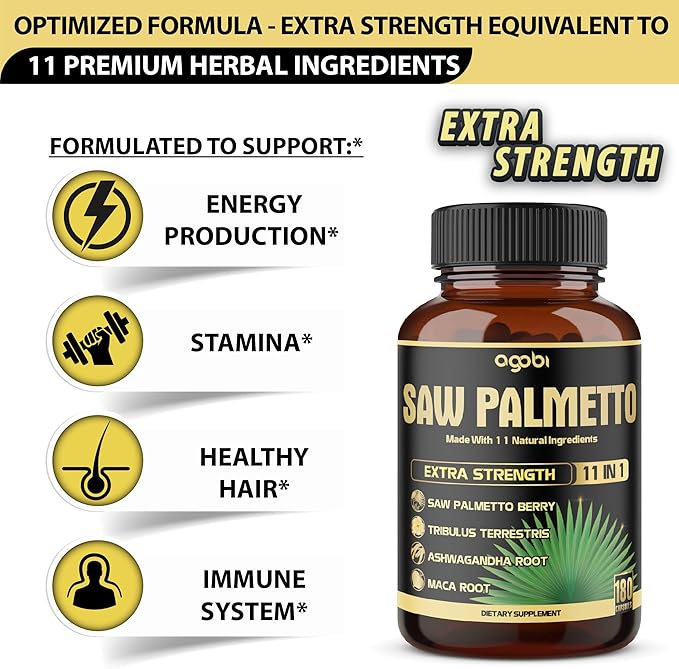- 🌿 11in1 Extra Formula Booster with High Absorption Agobi Saw Palmetto Berries Supplement; Support optimal prostate, restful mood, immune system, and energy production for men & women.