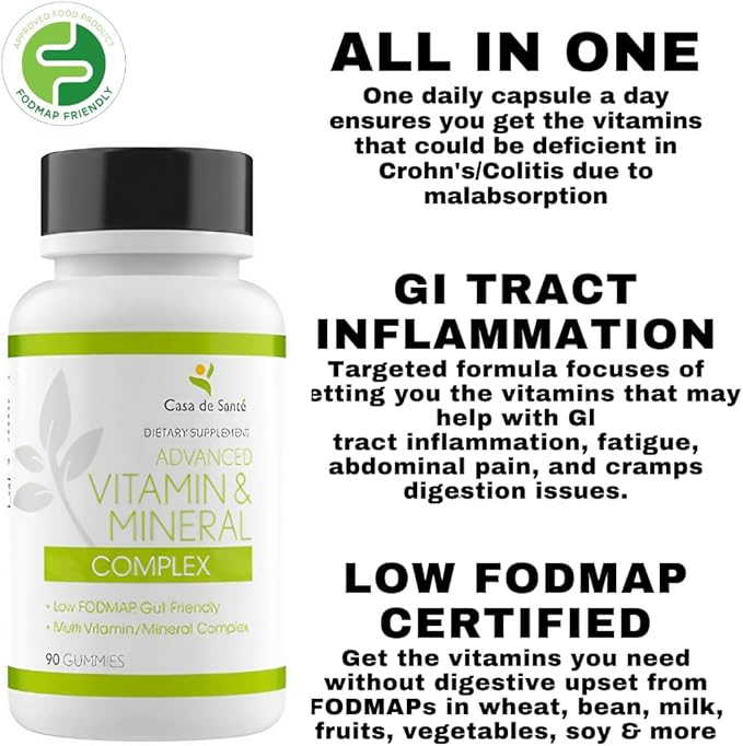 Advanced Vitamin & Mineral Gummies, Low FODMAP Certified| Crohn's Supplement| Crohn's & Colitis Supplements| IBD, IBS, SIBO or Malabsorption Nutritional Support| Gut Friendly, No Bloating
