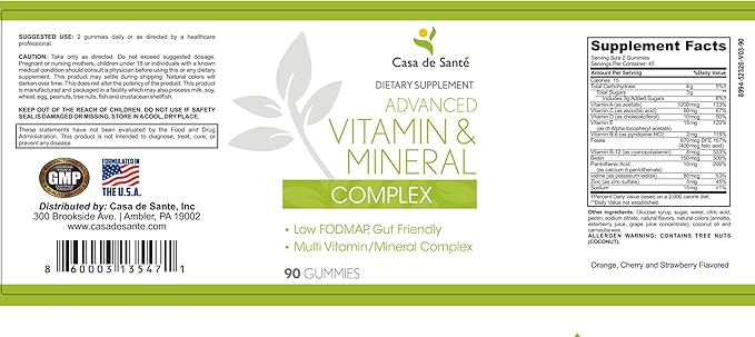 - Advanced Vitamin & Mineral Complex Gummies that are low FODMAP Certified gut friendly, providing a convenient and delicious way to support your health and nutrition.