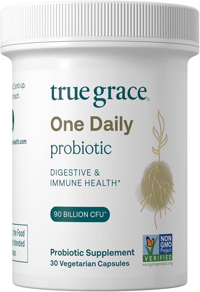 True Grace One Daily Probiotic - 30 Vegetarian Capsules - Gut, Digestive & Immune Health Support Blend with Prebiotic Fiber - Organic, Gluten Free, Dairy Free, Soy Free