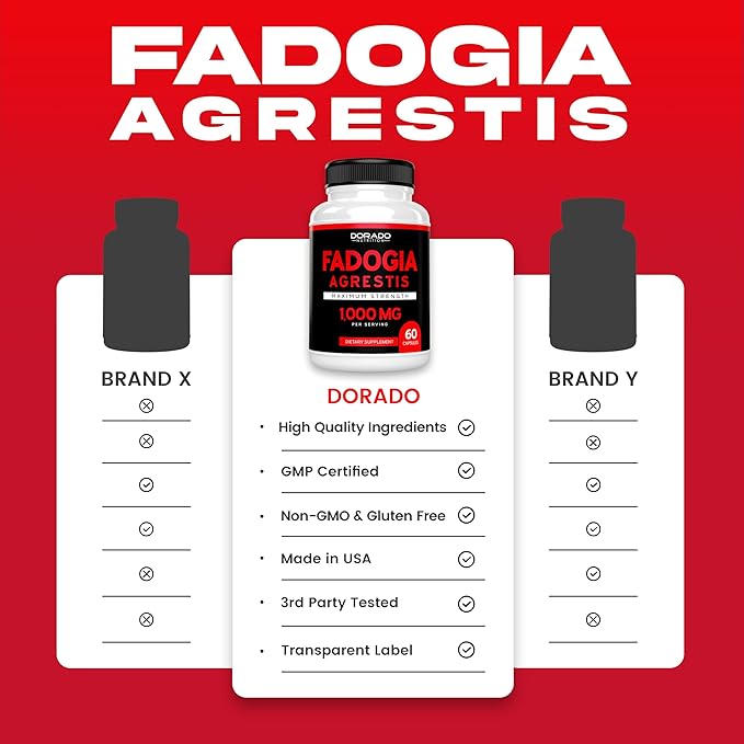 - MUSCLE MASS- Fadogia Agrestis has both been shown to support lean muscle mass. Also, Fadogia Agrestis has other health benefits supporting Performance & Drive, Fatigue, & Strength. All Dorado products’ are Non-GMO & Gluten Free.