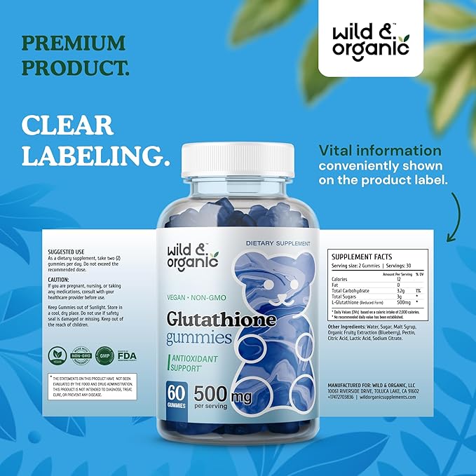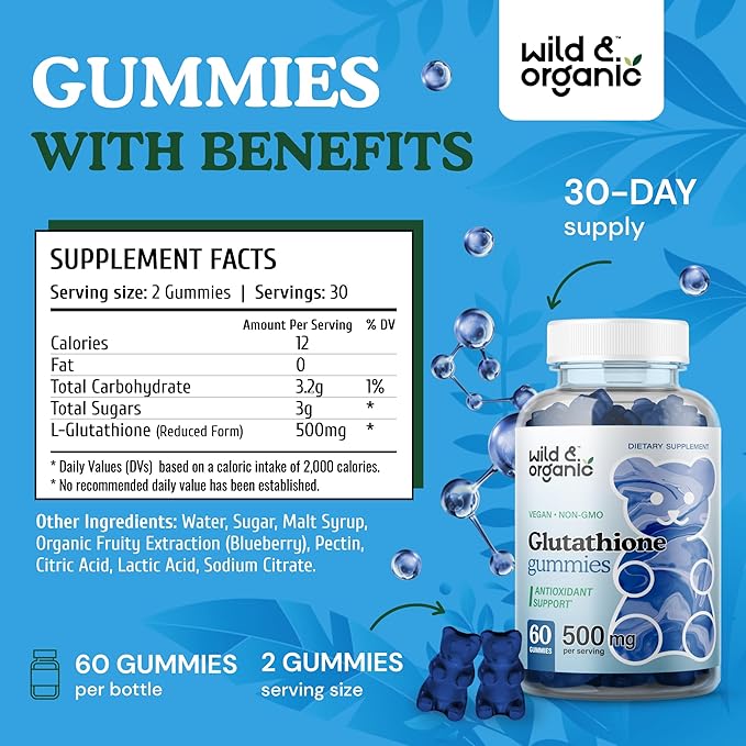 - 30-Day Supply: Each bottle contains 60 Wild & Organic glutathione chewables, providing a 30-day supply when taking two gummies per day.