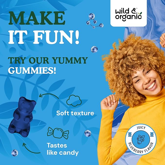 - Fruity Flavor: Enjoy a pleasant experience with Wild & Organic glutathione antioxidant supplement, featuring a delicious blueberry flavor.