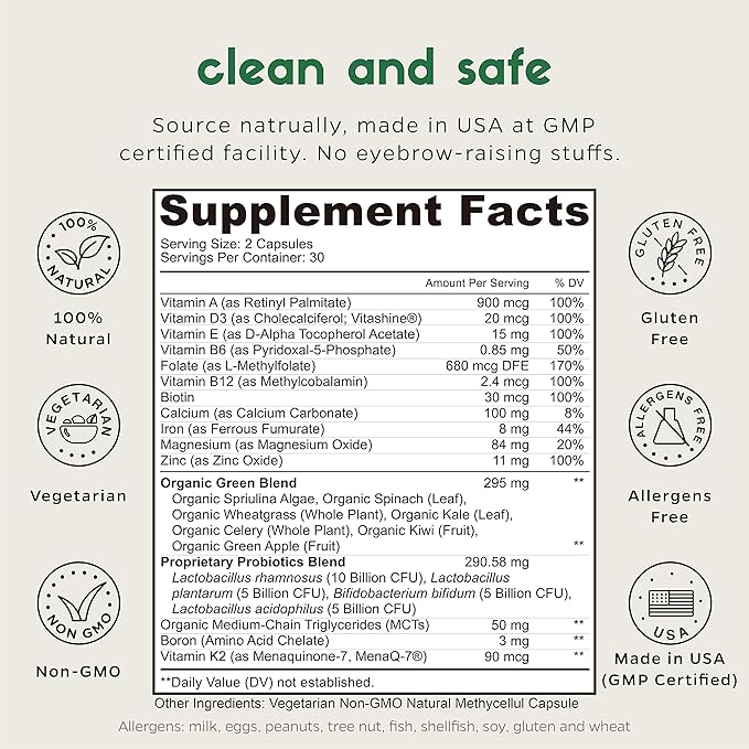 - Primary Supplement Type : Probiotics, Multivitamin, Minerals, Super Greens
