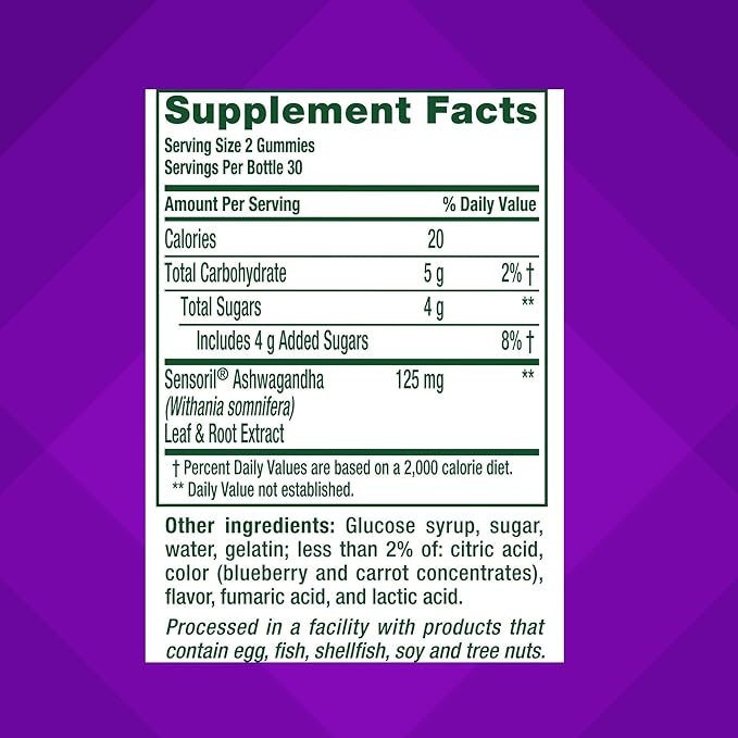 - CLINICALLY SHOWN ASHWAGANDHA: With 125mg of Sensoril ashwagandha per serving, Vitafusion ashwagandha gummies are a delicious & nutritious alternative to liquid, capsules, drops, and powder versions of ashwa.