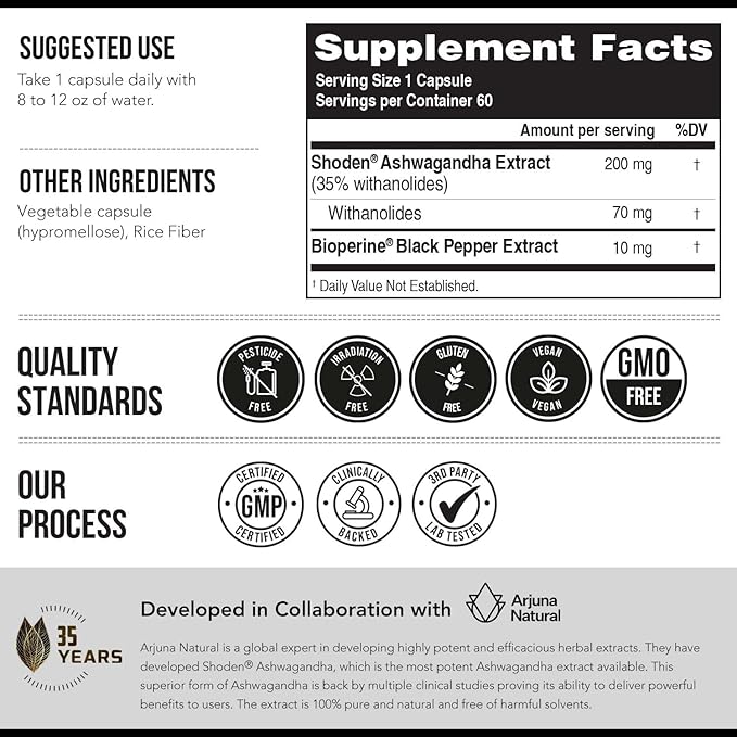 - MAXIMUM ABSORPTION + ENHANCED WITH BIOPERINE®– Studies have shown Shoden® Ashwagandha to have significantly higher absorption than other leading forms of Ashwagandha. We add BioPerine® to enhance bioavailability further.