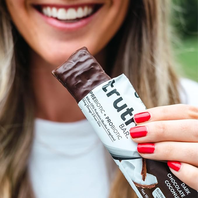 - GUT HEALTH NUTRITION BAR - Plant-Based with Prebiotic and Probiotics, 180-calorie Truth Bars contain 9 grams of fiber and Omega-3s from Chia seeds to help establish a flourishing gut microbiome.