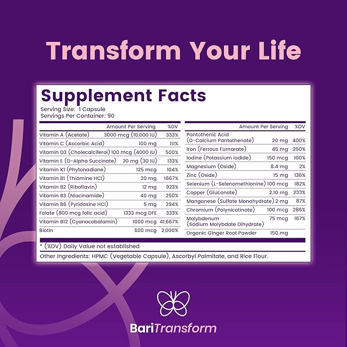 - The BariTransform Bariatric Multivitamin is a ONCE-DAILY bariatric all in one multivitamin formulated with Organic Ginger Root, known for its powerful soothing properties.