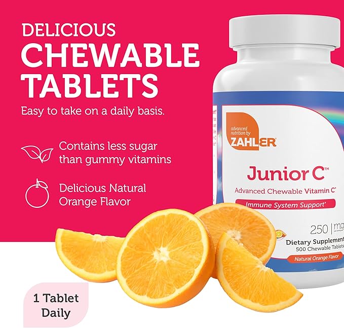 Zahler Junior C Advanced Chewable Vitamin C for Kids - Immune Support Kids Vitamins in Delicious Orange Flavor - Kosher Kids Vitamin C for Immunity - Vitamin C Chewable Antioxidant - (500 Count)